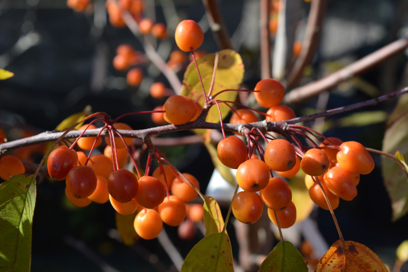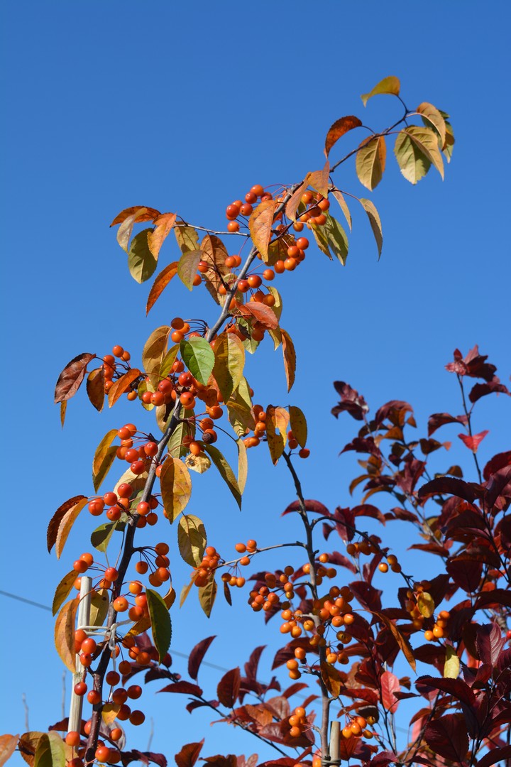 piccoli frutti rossi, poi rosso-arancio, fogliame rosso-arancio in autunno