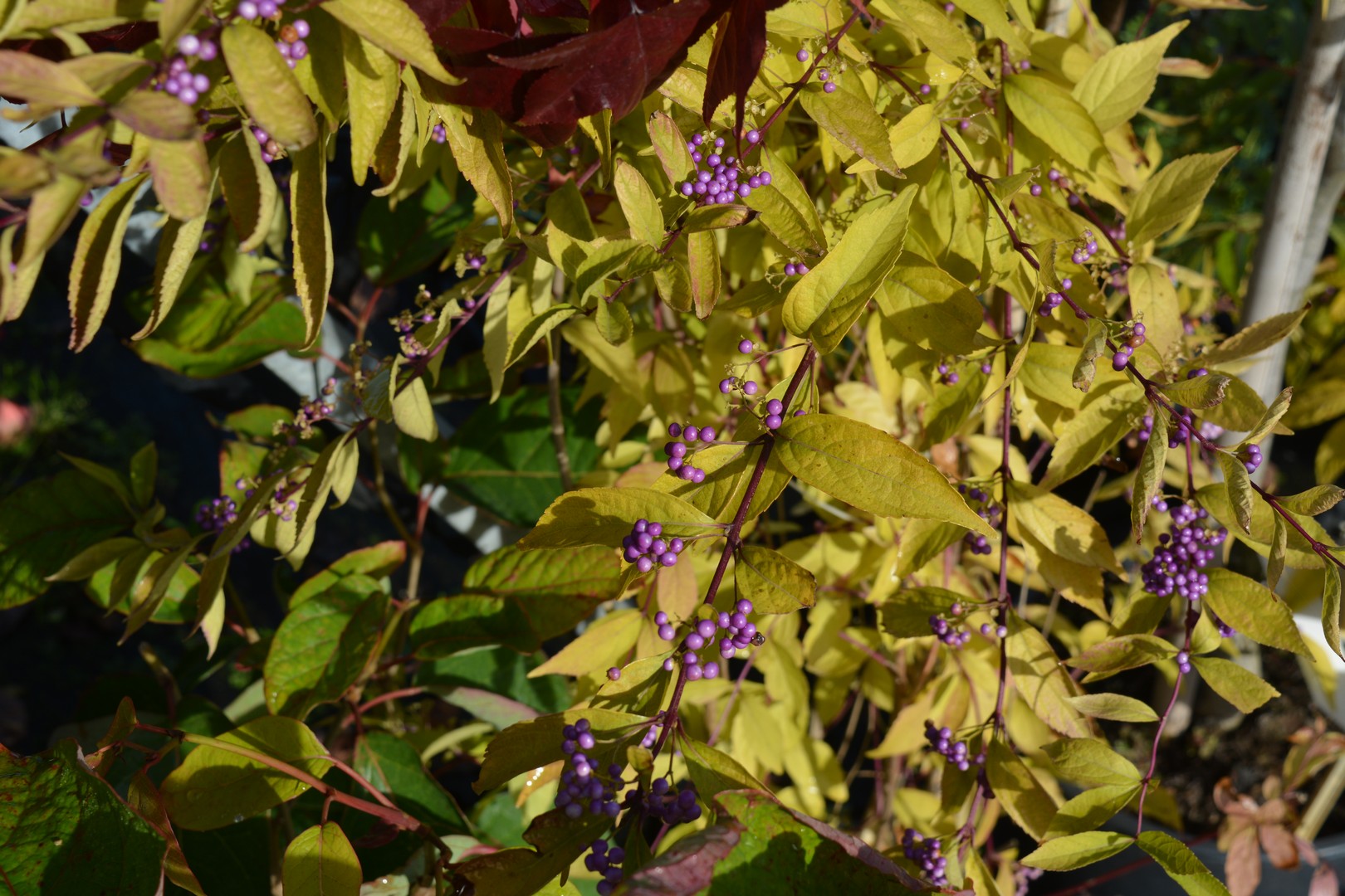 Questo arbusto ha il suo momento di massimo splendore in autunno. In settembre-ottobre si copre di piccole bacche tonde viola brillante portate a ciuffetti lungo i rami, che rimangono sulla pianta per alcuni mesi, fino in inverno inoltrato. I cespugli di Callicarpa ‘Issai’ raggiungono un’altezza di circa 120-150cm per un diametro solitamente più grande, dal momento che i rami crescono dalla base con portamento arcuato. Il fogliame è deciduo, di piccole dimensioni, verde con sfumature violacee in autunno. La fioritura è estiva, da giugno a agosto, in ciuffi di piccoli fiorellini rosa sul legno nuovo, per cui il cespuglio può essere potato corto ogni anno a fine inverno. Presso il vivaio Susigarden è disponibile anche Callicarpa dicotoma f.albifructa, a bacca bianca.