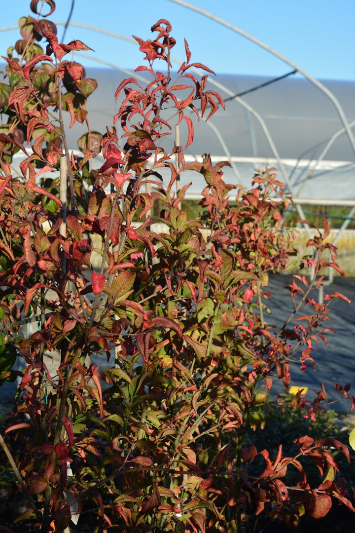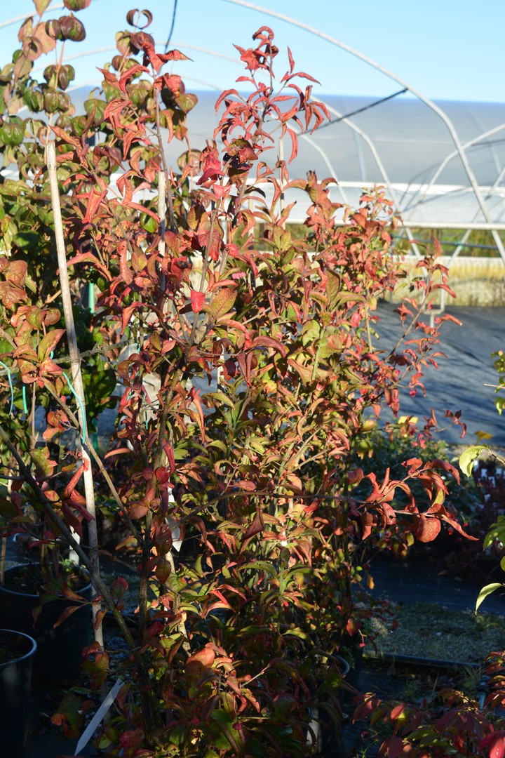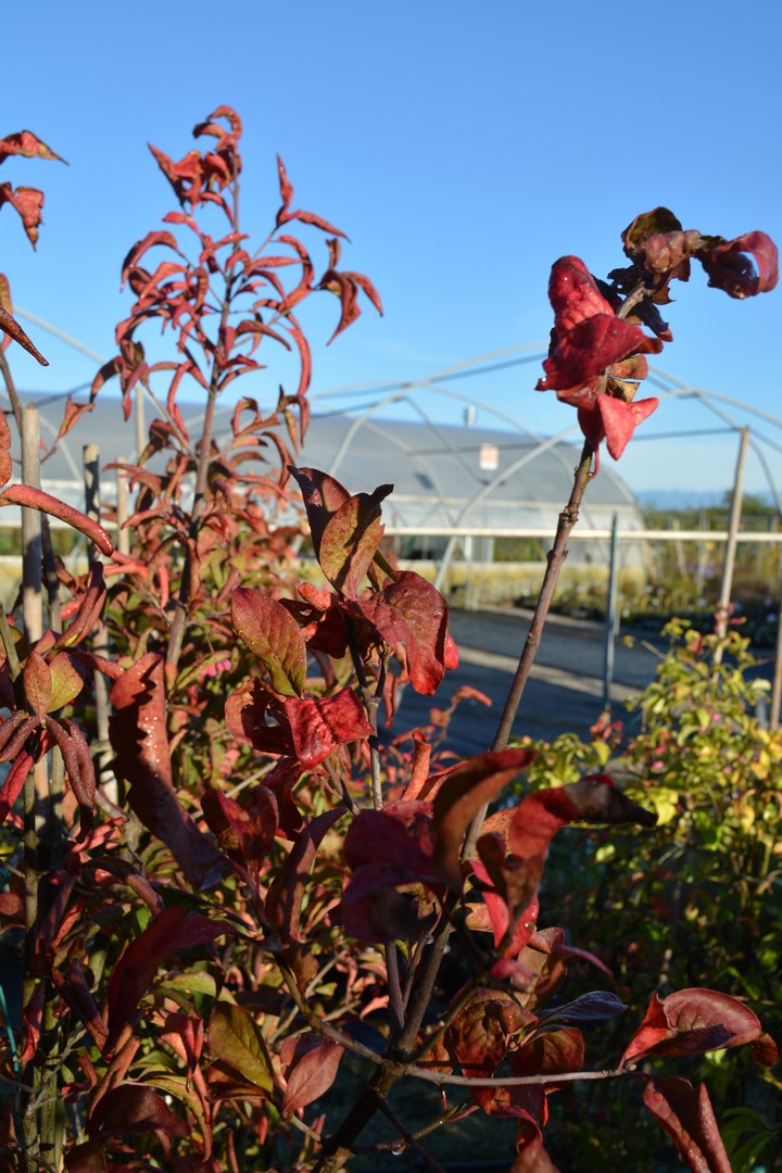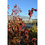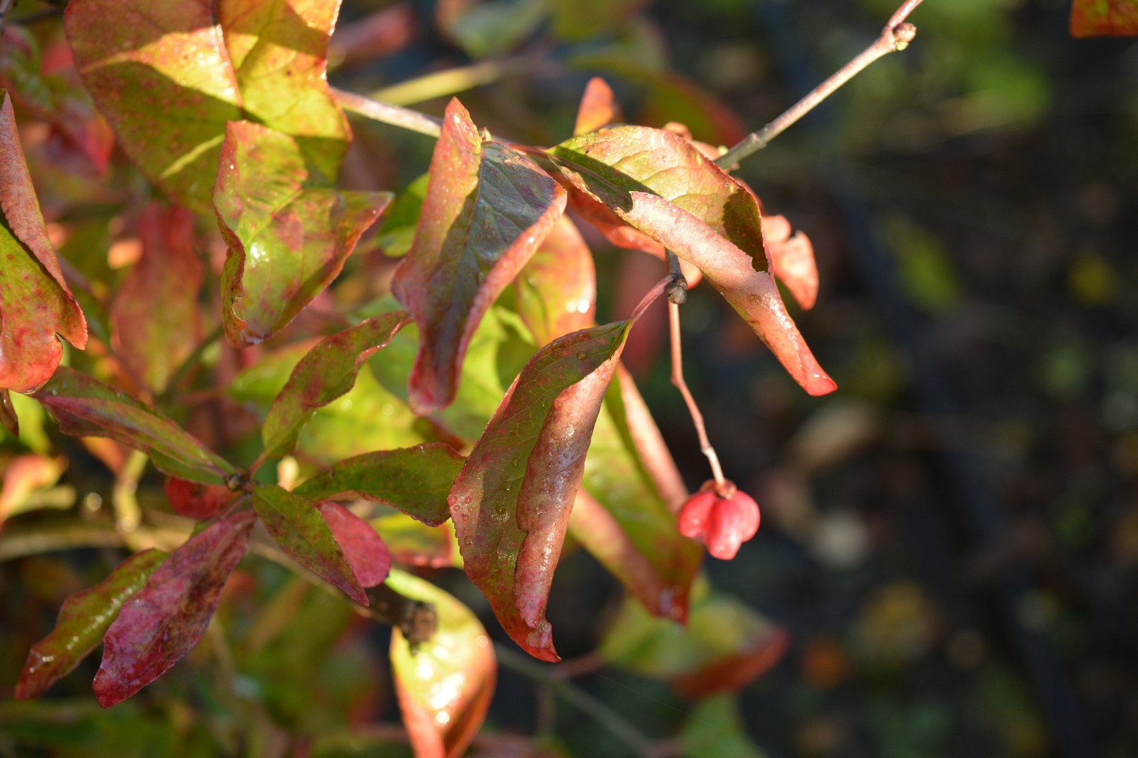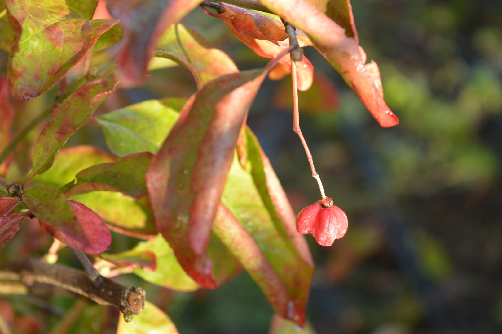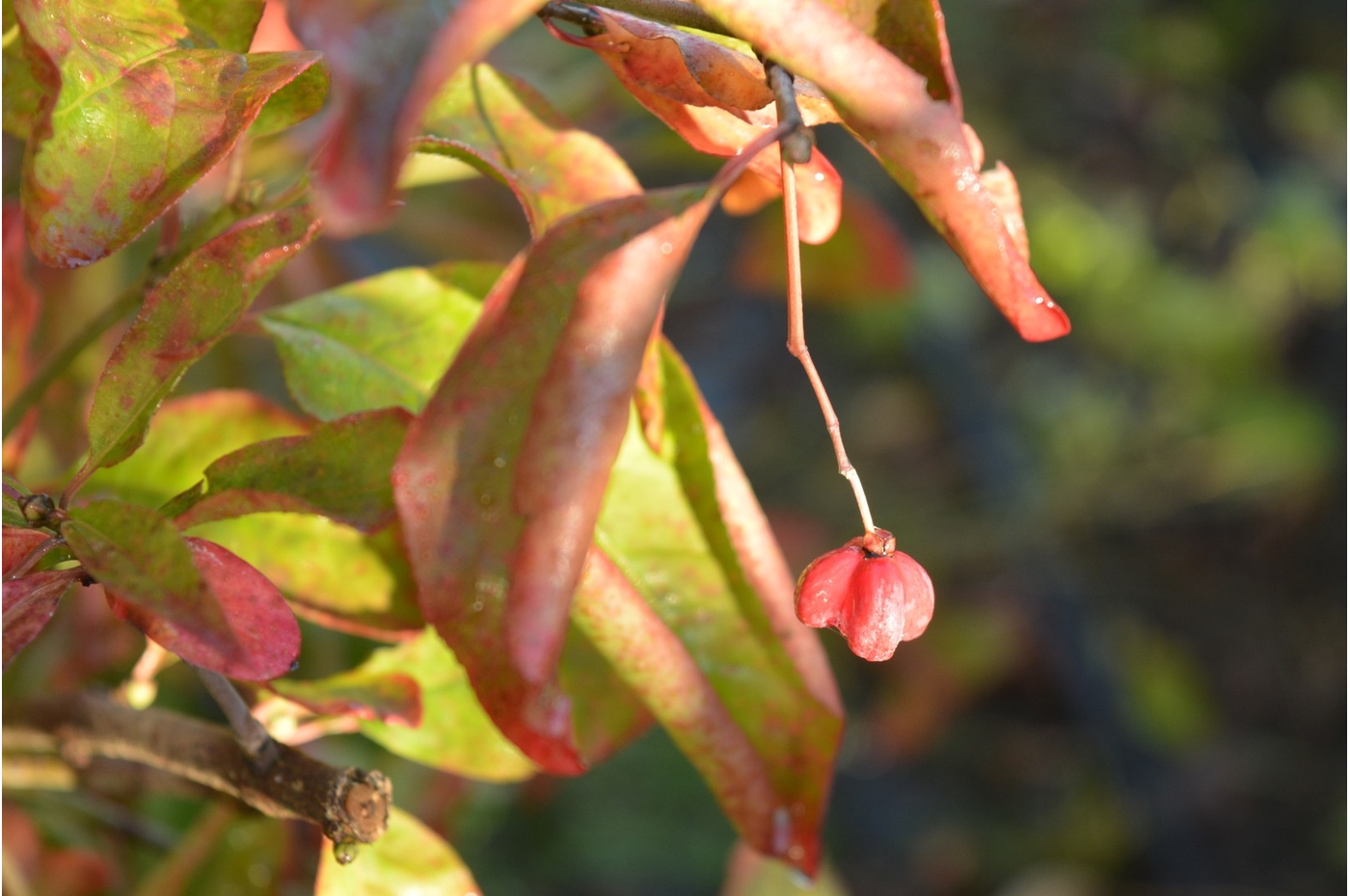 bacche rosse, rami arancio, fogliame rosso vivo in autunno