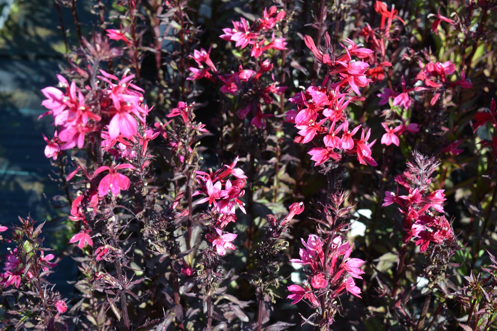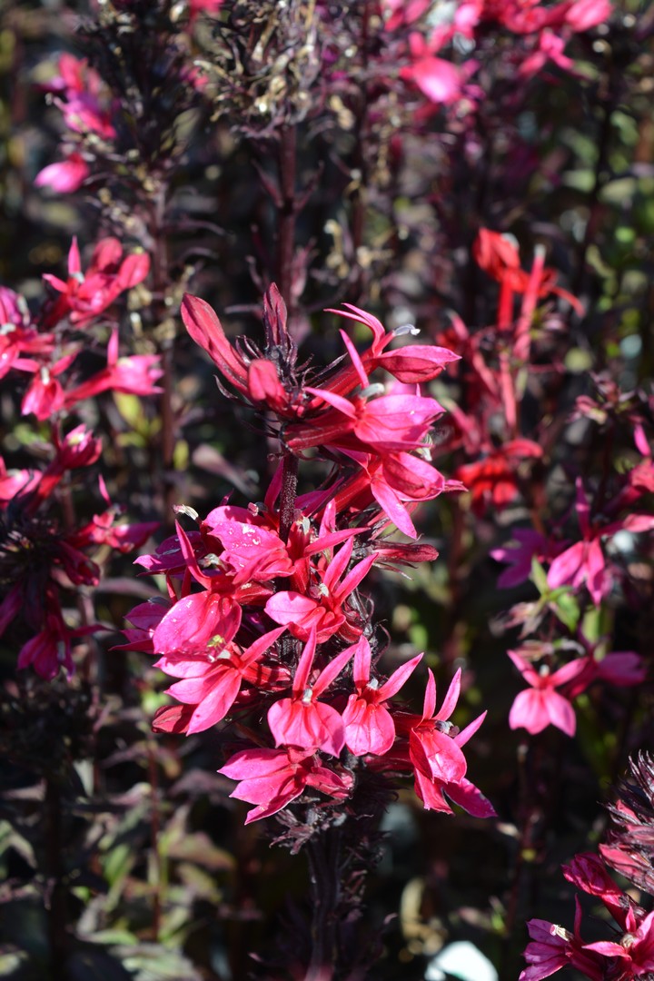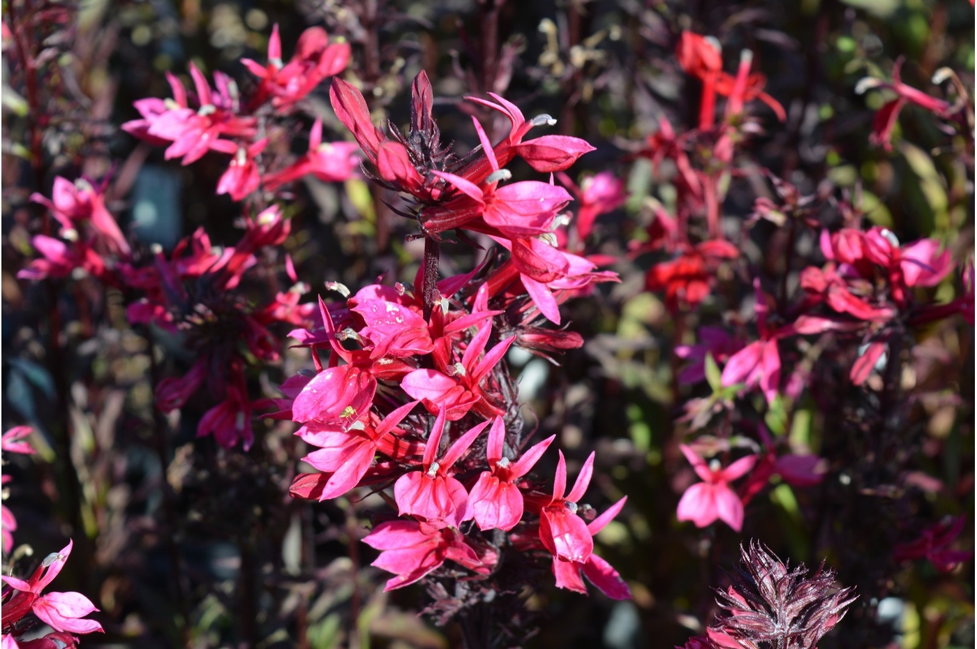 fiori in fitti racemi eretti, fogliame verde-bronzeo