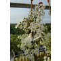 Clematide sempreverde con piccole foglie coriacee, frastagliate, verde brillante, da coltivare in posizione mediamente soleggiata e su terreno ben drenato. Fiorisce in primavera coprendosi quasi completamente di fiori bianchi di circa 4cm di diametro, con 6-7 petali disposti a disco intorno alla corona di stami gialli. Si arrampica aggrappandosi a sostegni senza produrre radichette avventizie raggiungendo nel tempo quasi 3m in altezza. Qualora fosse necessario, dopo la fioritura si può intervenire blandamente con potature di correzione e sfoltimento della chioma.