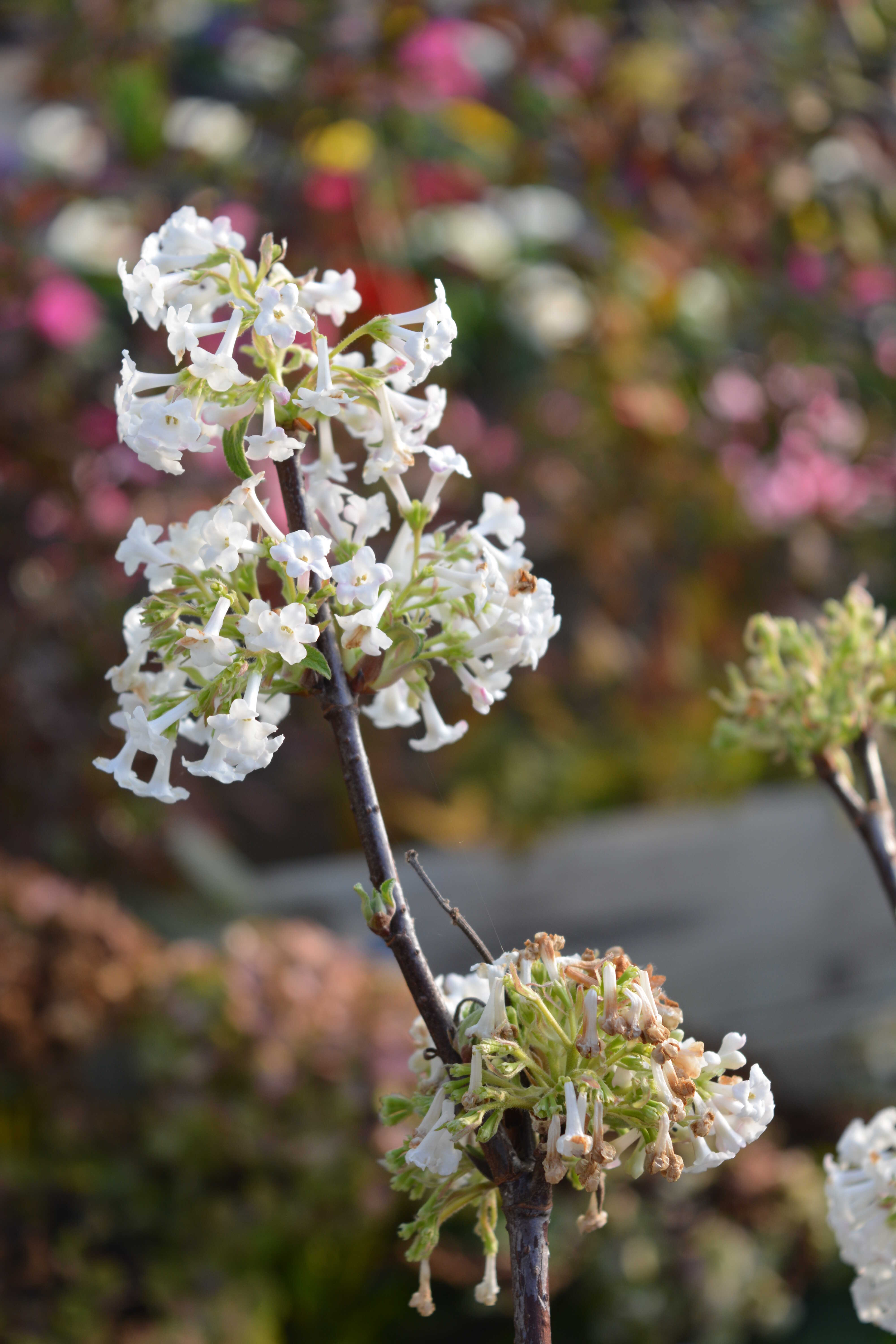 fiori profumati in mazzetti densi, foglie bronzo da giovani e in autunno