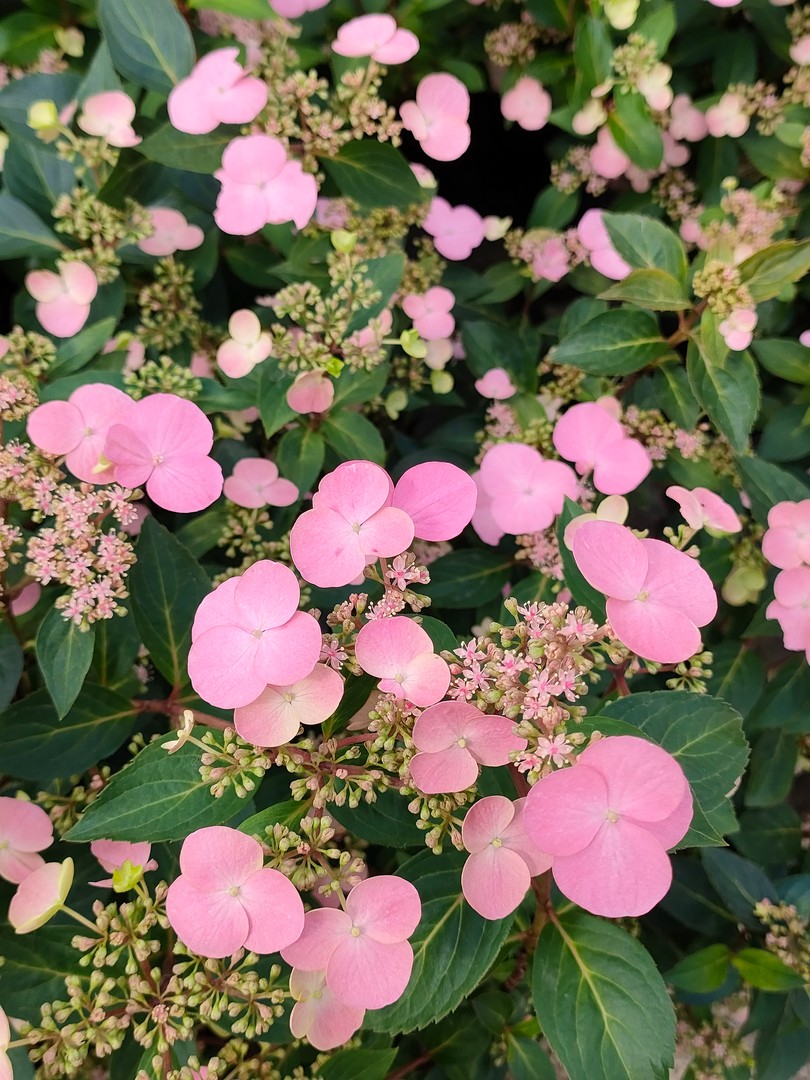 Lacecap; portamento allargato, fiori lungo tutto il ramo