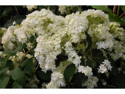 Questo insolito tipo di ortensia della specie H. arborescens è caratterizzato da infiorescenze molto particolari, di color bianco-verdino, larghe e leggermente arrotondate a cupola, composte da numerosi fiori sia fertili che sterili. Questi ultimi, di dimensione variabile, sono doppi, cioè formati da petali appuntiti sovrapposti che conferiscono al fiore una forma stellata, e all’intera infiorescenza un aspetto dinamico e molto attraente. Come arbusto ha uno sviluppo contenuto, in media tra 1m e 1,5m in altezza, e una crescita folta e compatta. Cresce al meglio in posizioni semiombreggiate ma con qualche ora di sole diretto, che favorisce la lignificazione. La fioritura è ricca e prolungata, sui rami dell’anno, inizia molto abbondante in giugno e luglio e prosegue con minor intensità anche fino a settembre.