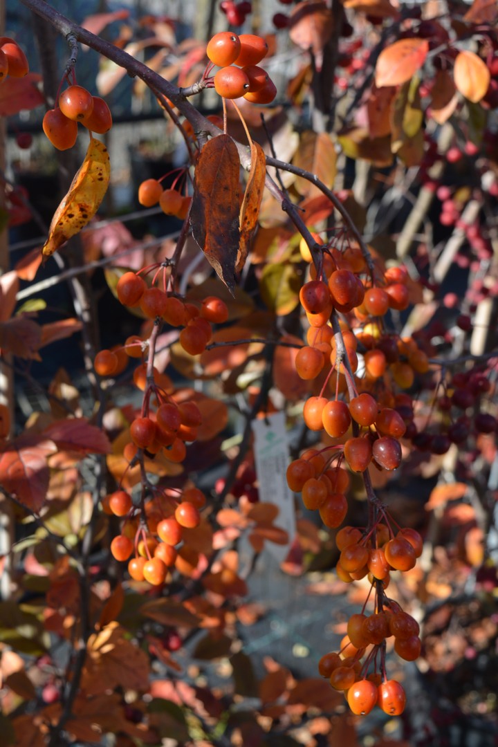 piccoli frutti rossi, poi rosso-arancio, fogliame rosso-arancio in autunno