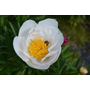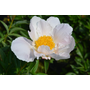 paeonia erbacea; fiore singolo con petali leggermente increspati e vistosi stami gialli centrali