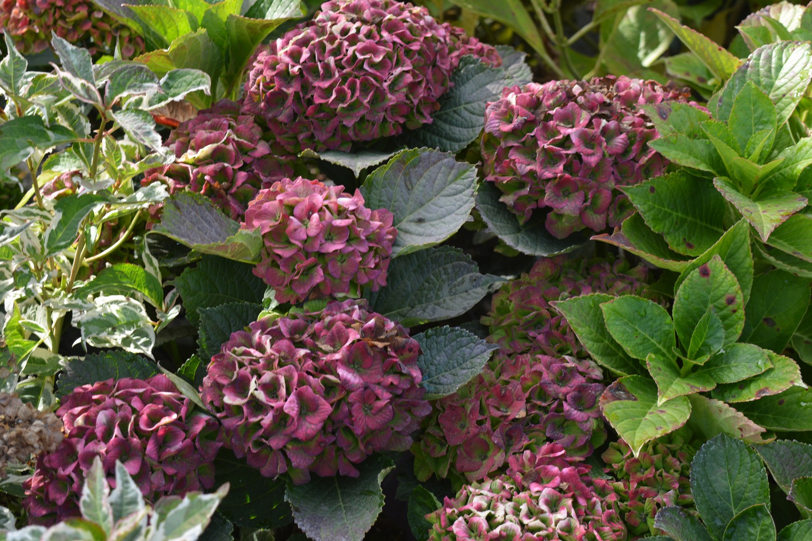infiorescenze tonde molto durevoli che cambiano colore con l'età, fogliame verde scuro
